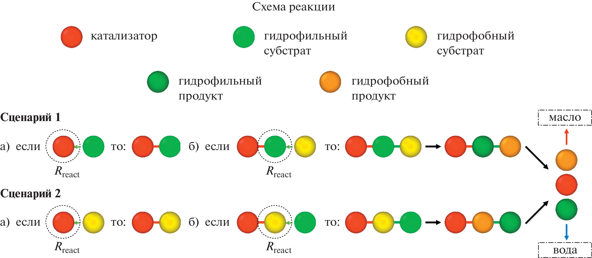 Effect of the architecture and composition of a hydrophilic microgel catalyst on the rate of interfacial catalytic reaction proceeding at the water/oil interface and involving reagents dissolved in opposite phases is studied using dissipative particle dynamics simulations. It is shown that a decrease in the crosslinking density of the microgel, the existence of a cavity in its architecture, an increase in its size, the incorporation the hydrophobic comonomers into a macromolecule, and a rise in the degree of solubility of a network macromolecule in oil contribute to acceleration of the catalytic reaction due to increase of the area of the water–oil–microgel contact and growth of the number of contacts between reagents and catalytic groups. However, in the case of amphiphilic microgels and microgels soluble in both phases, the acceleration of the reaction is restrained by a low rate of reagents diffusion and a rapid reduction in the concentration of reagents in the vicinity of catalytic sites.