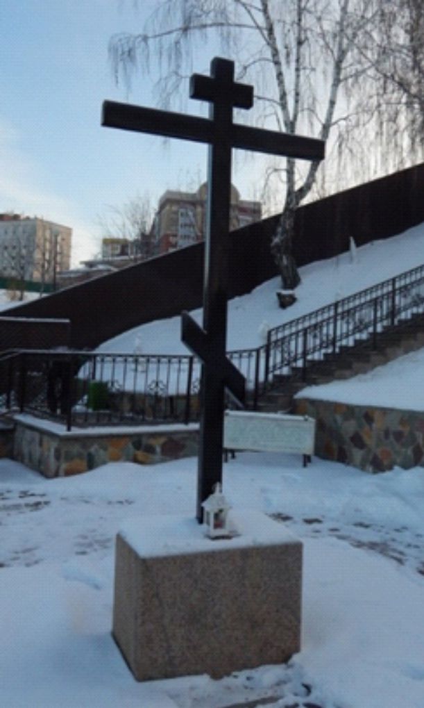 Fig. 3. The Cross of Worship, installed at the initiative of parishioners. The Tsarskaya Pristan Center (Tyumen, 3, Gosparovskaya Str.). Photo by E. Makarov, November 3, 2022