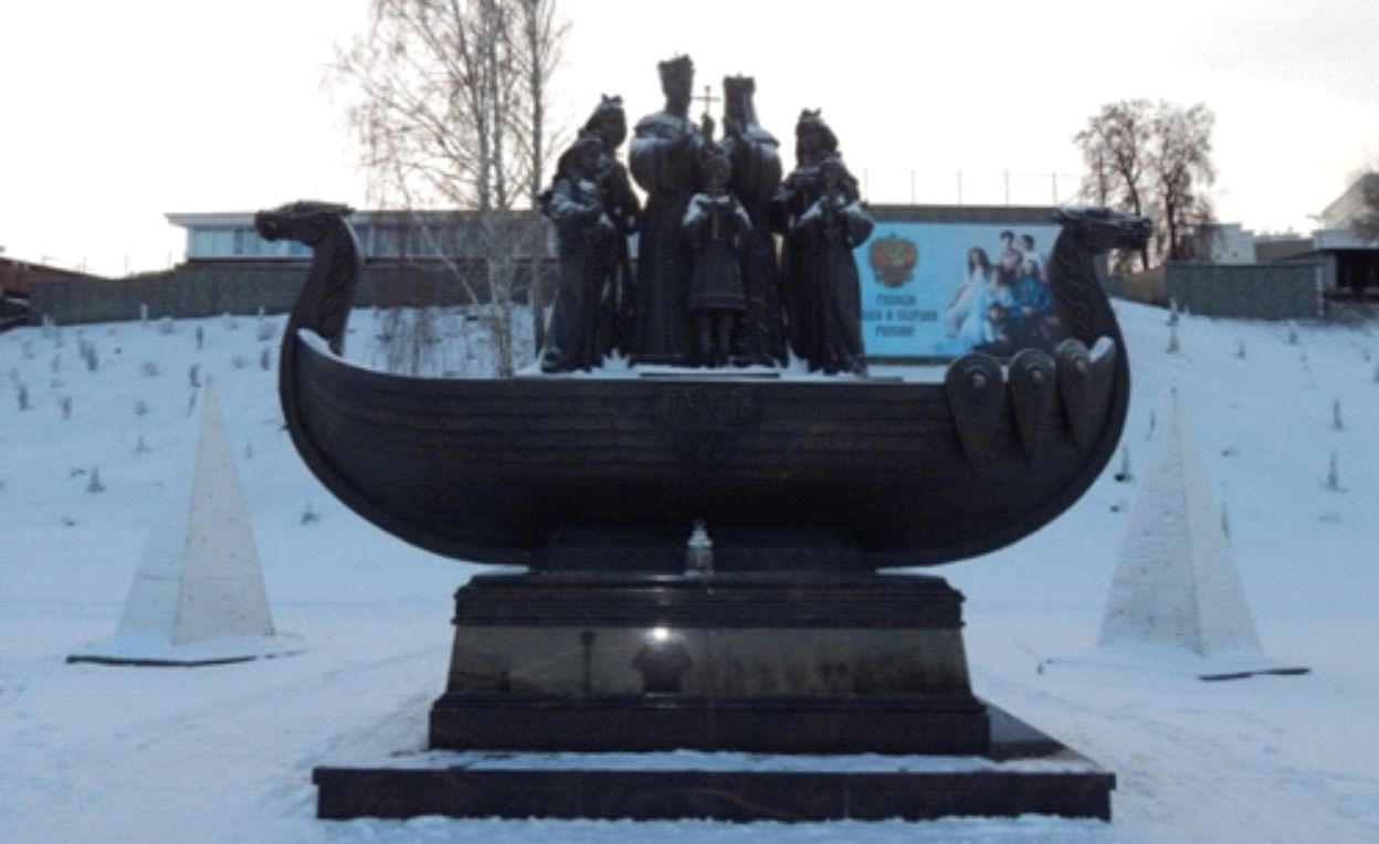 Perpetuating the memory of imperial family members by installing the monument was offered by members of the Tyumen regional branch of the Tsargrad Society [8]. The object was consecrated by Metropolitan Dimitri of Tobolsk and Tyumen. The monument has been installed within about a year [7]. The monument is located in a closed area of the monastery. The sculptor I.V. Makarova noted that all her works dedicated to members of the Romanov family are located on the land occupied by the Russian Orthodox Church, because “... there is no other way, only under the protection of the Lord, his wing!” [7]. After a while, an entrance was made near the river side to view the monument through the reconstruction of the fence, which is the fence of the monastery.