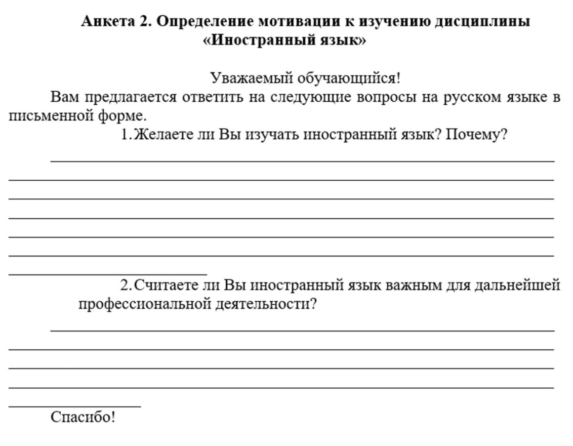 Рис. 2. Анкета для определения мотивации респондентов к изучению иностранного языка