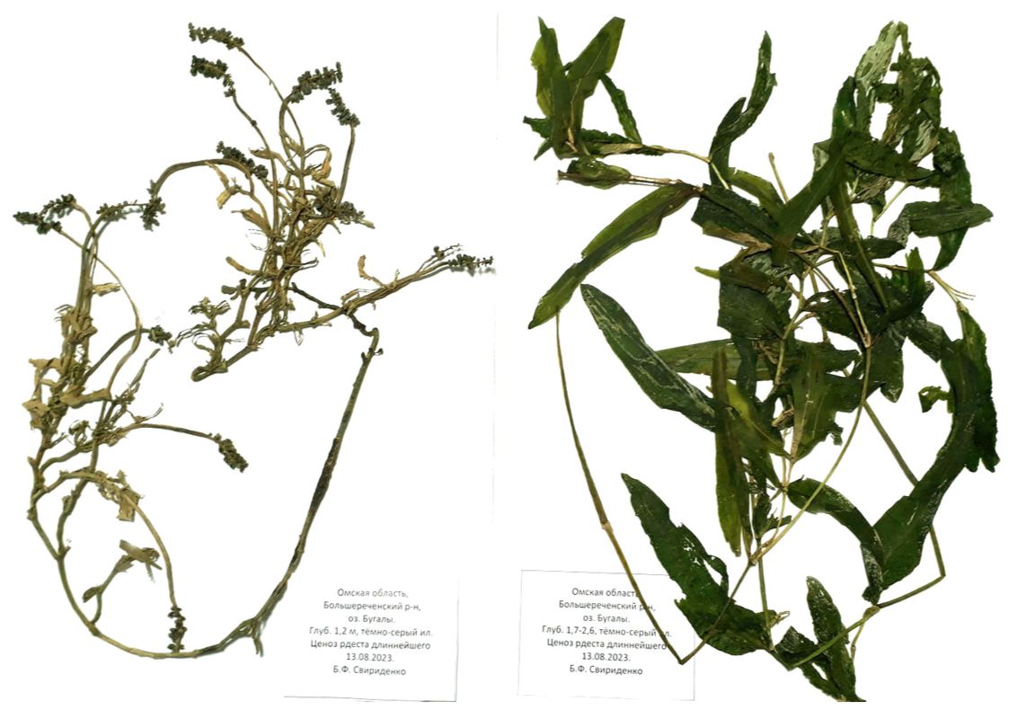 Рис. 3. Гербарные образцы Potamogeton praelongus из оз. Бугалы. 13.08.2023 г.