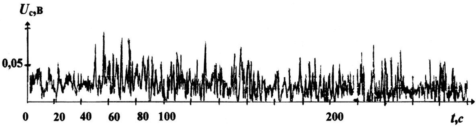 Рисунок 1 – Порывы ветра, зарегистрированные параметрическим регистрирующим устройством на ультразвуковом луче