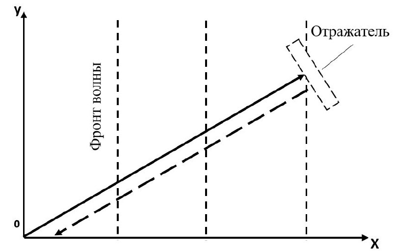 Зондирующий луч находится под некоторым углом относительно порыва ветра (рисунок 3). Отражатель предназначен для объединения точек излучения и приёма колебаний.