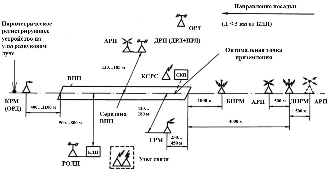 Рисунок 6 – Схема измерения величины порывов ветра на ВПП. Источник: составлено на основе «Устройство аэродромов. Радиотехнические средства» // [Электронный ресурс]. URL: https://oleg-knyzhov.ru/uroki/ustrojstvo-aerodromov-radiotehnicheskie-sredstva