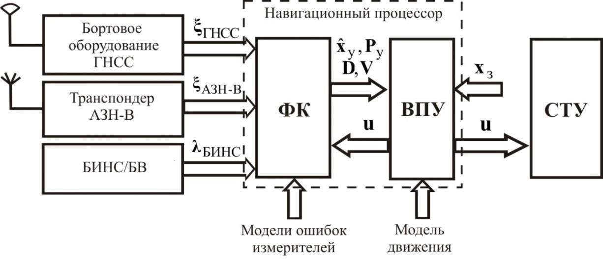 Рисунок 1 – Состав ИСН: СТУ – система траекторного управления; ФК – фильтр Калмана; ВПУ – вычислитель параметров управления