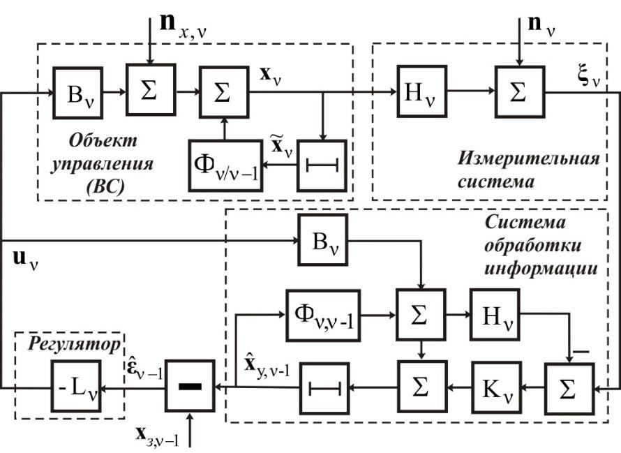Оптимальный алгоритм в постановке Летова-Калмана запишем в виде [Меркулов и др., 2018]: