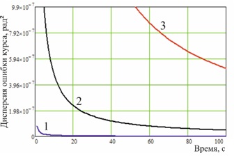 Рисунок 6 – Дисперсия ошибка оценки курса полета для конфигураций 1-3