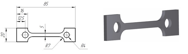 С целью проведения экспериментального исследования для определения влияния различных по абсолютному значению нагрузок на изменение микроструктуры сплава были использованы специально изготовленные образцы из сплава Inconel 738LC. Химический состав сплава представлен в таблице 1. Форма испытуемых образцов представлена на рисунке 2, толщина каждого из образцов составляла 2 мм.