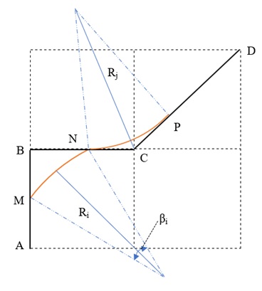 Дистанции фрагментов спрямленных участков (L’) от А до D должны вычисляться по формуле:
