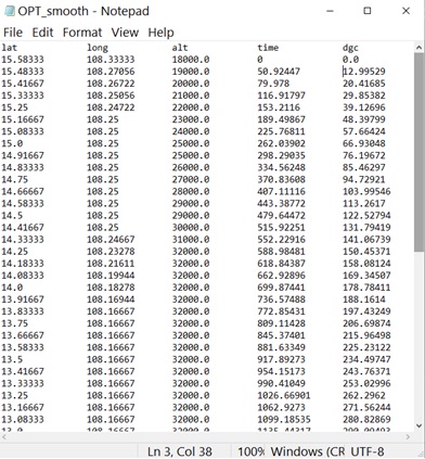 Рисунок 6 – Пример файла данных об оптимальной сглаженной 4D-траектории