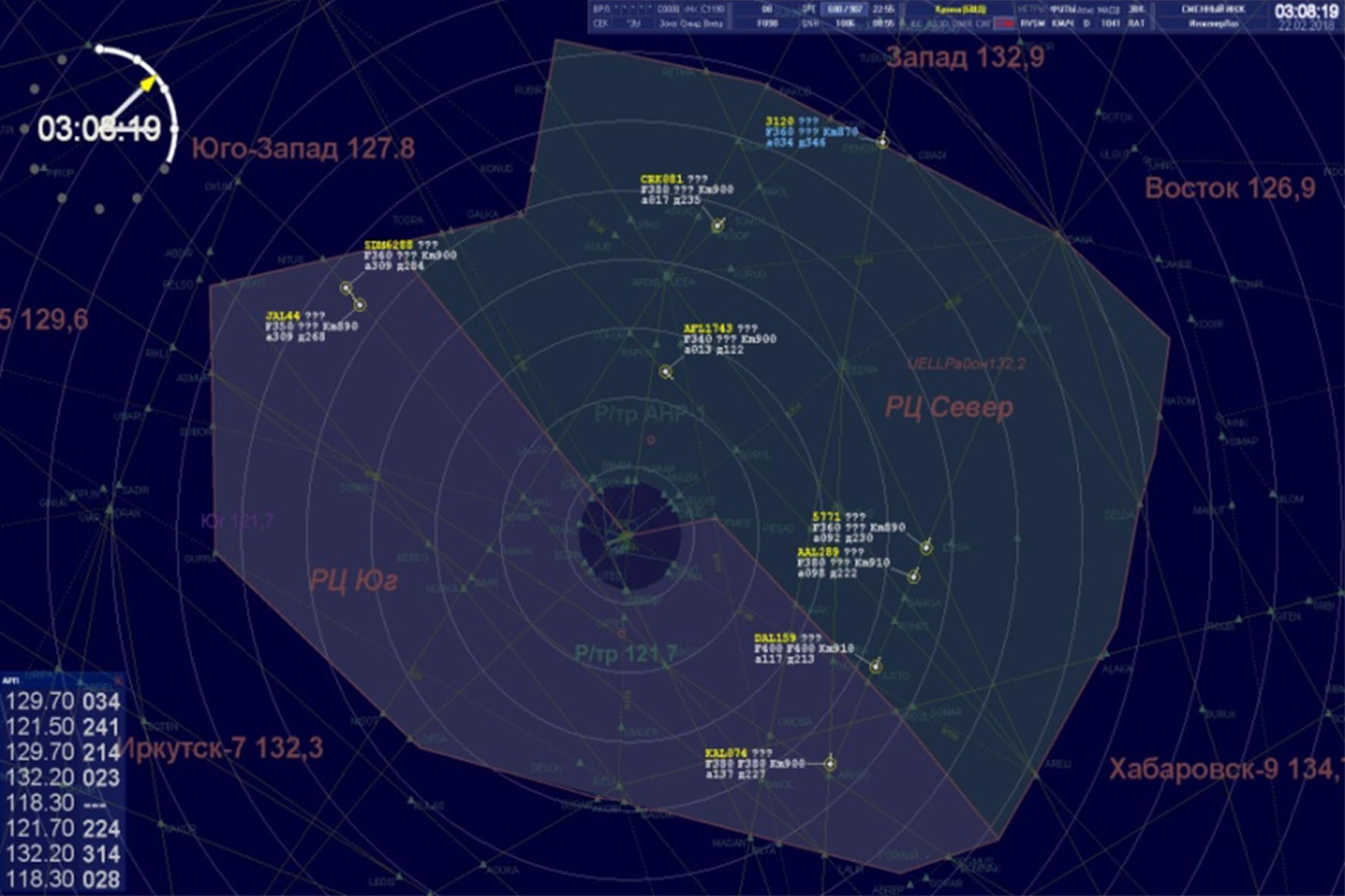 В связи с этим стоит оценить необходимость применения МПСН для построения новых оптимальных маршрутов и воздушных трасс, где реализуется функция наблюдения, для сокращения интервалов движения и повышения качества управления воздушным движением. Реализуемый службой движения лозунг «Слышу, Вижу, Управляю» содержит составляющую, требующую необходимости визуализации пространственного положения ВС, находящихся под управлением, на рабочем месте диспетчера, в реальном времени и во всей зоне ответственности регионального центра. В данной работе анализу были подвергнуты три области пространства, в которых выполняются полеты по приборам (по воздушным трассам), имеющие особый интерес с точки зрения оптимального построения траекторий и имеющие большую географическую площадь. Такими областями явились: Иркутский, Нерюнгринский и Магаданский региональные центры ОрВД.