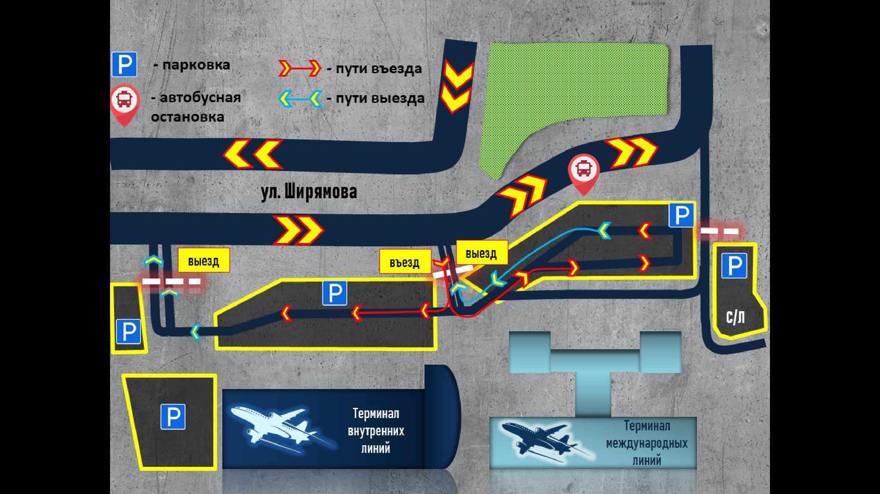 Единые правила организации, эксплуатации и пользования парковочными местами на территории привокзальной площади определены Стандартом организации ИСМ ПЛ 4.5.02.04-22 «Положение о предоставлении услуг парковки транспортных средств на привокзальной площади аэропорта».