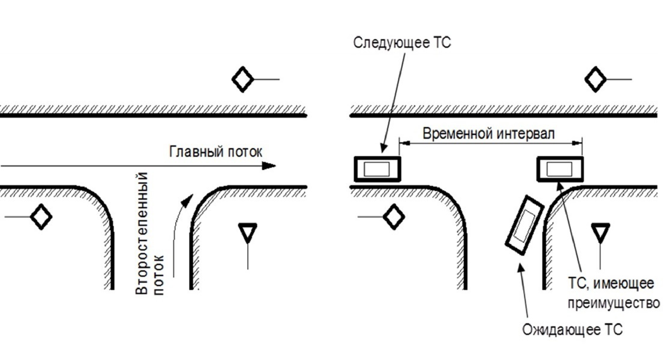 Согласно схеме, представленной на рисунке 2, видно, что модель Т-образного перекрестка влечет за собой появление второстепенного потока на въезде на парковку.