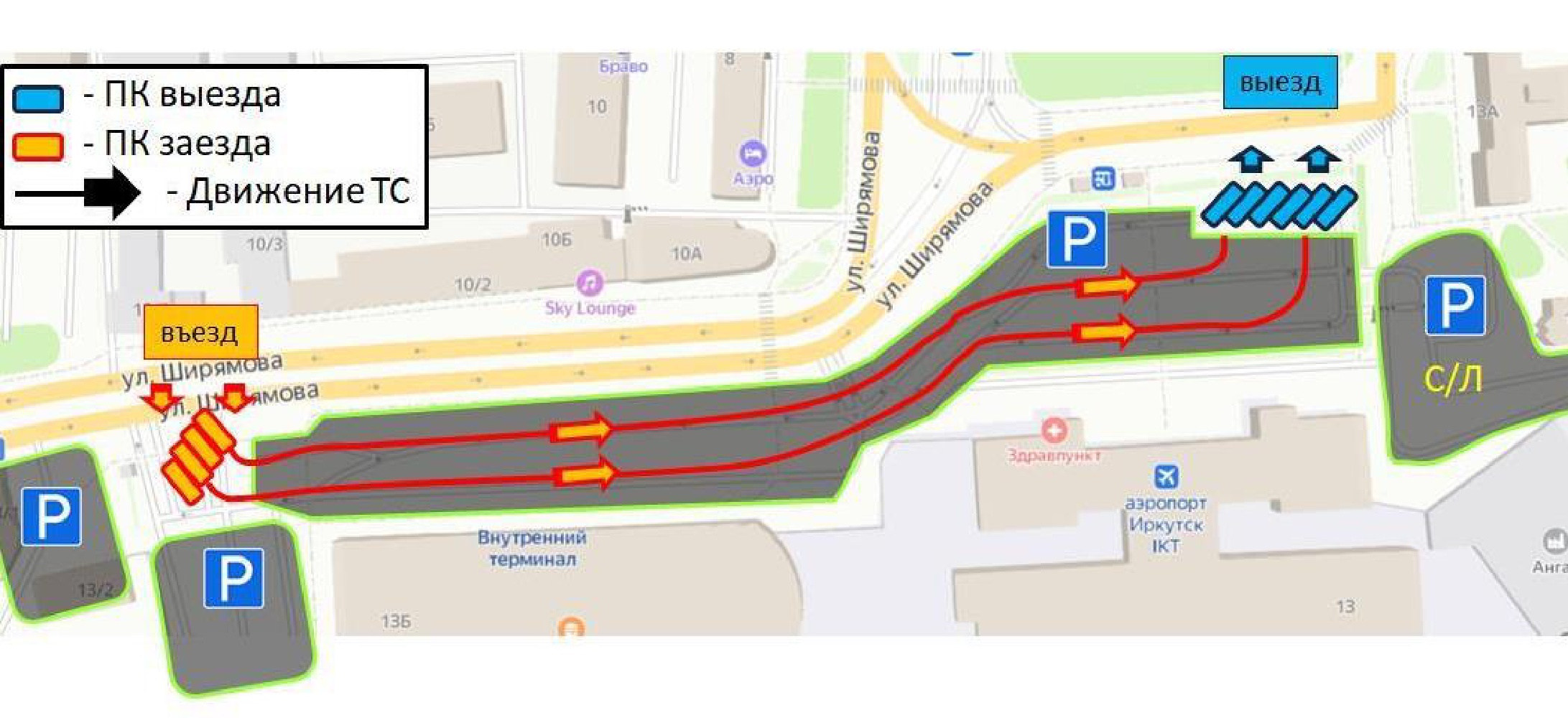 Рисунок 1 – Схема движения на территории парковочной зоны исследуемого аэропорта