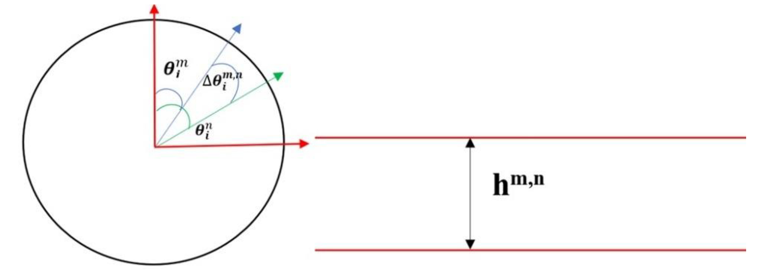 где: rm,n – расстояние между двумя параллельными маршрутами ОВД – «m» и «n».