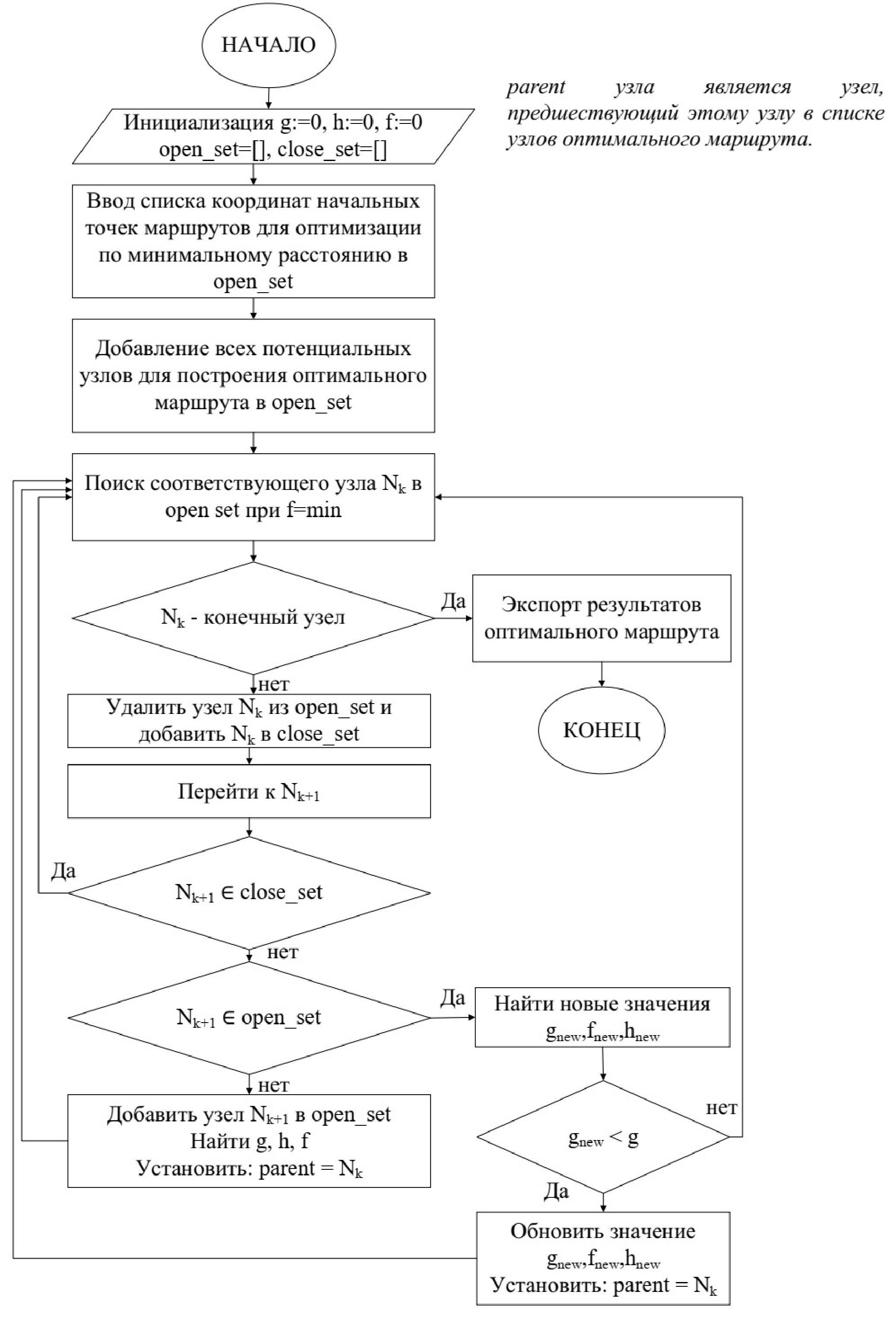 Рисунок 3. Блок-схема алгоритма A-star в оптимизации сети маршрутов ОВД