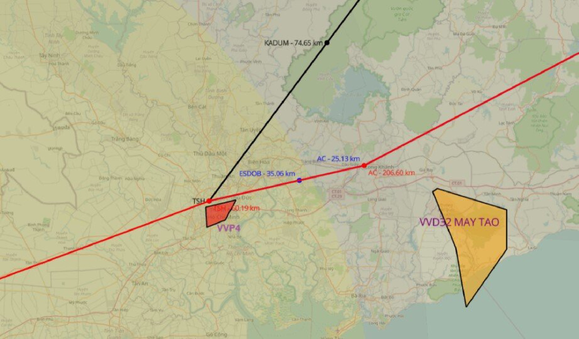 - международный аэропорт Тан Сон Нхат (VVTS) – международный аэропорт Дананга (VVDN). Причина выбора: это чрезвычайно важный маршрут ОВД, осуществляющий внутренний рейс, соединяющий 2 крупнейших аэропорта ВП РДЦ Хошимина. Этот рейс имеет достаточно высокую плотность выполнения операций (в среднем 25 полетов в день). Кроме того, этот маршрут ОВД соединяет два района полетной информации во Вьетнаме, помогая соединить полёты с юга на север Вьетнама, включая международный аэропорт Нойбай (VVNB). В 2023 году маршрут VVNB – VVTS занял четвертое место в мире по загруженности маршрута ОВД с объемом перевозки 10,9 млн пассажиров5;
