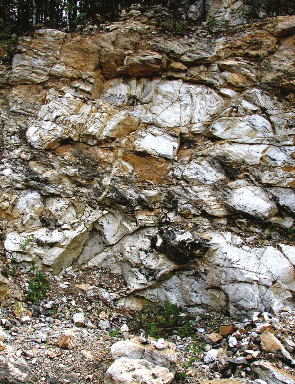 Рис. 2. Фрагмент обнажения восточной стенки карьера.