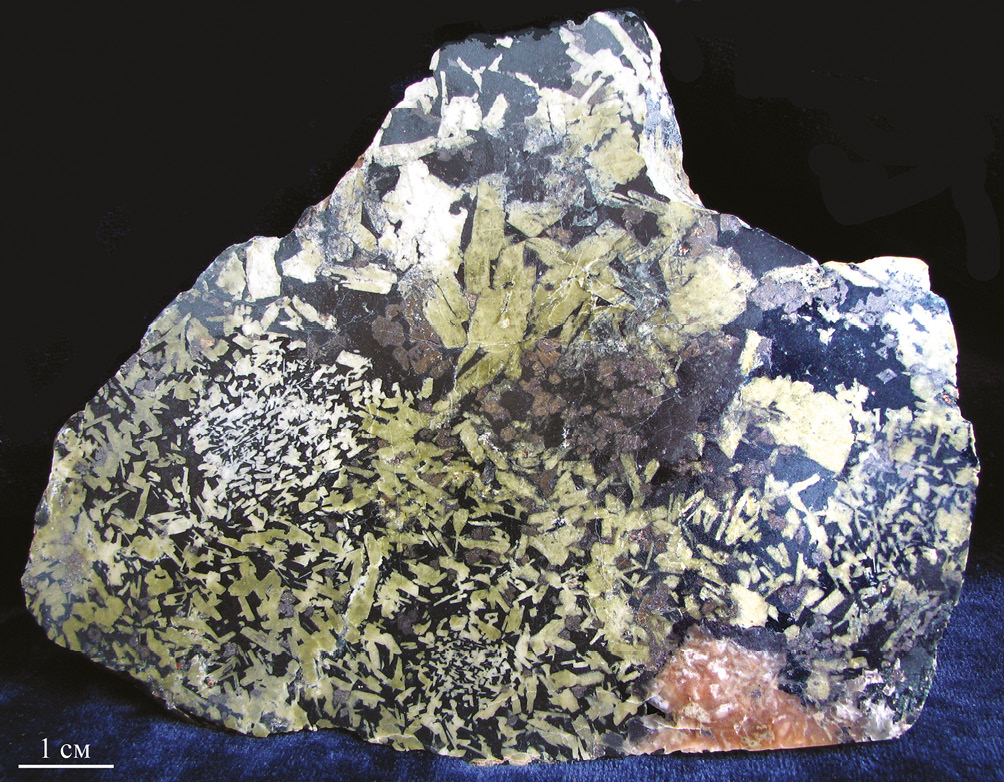 Скарновые минеральные ассоциации Шишимской копи известны давно (Мушкетов, 1877). Копь заложил П. Барбот-де-Марни в 1833 г. для добычи друз крупнокристаллического хлорита (рис. 2). В разное время разработки копи здесь находили синий и розовый апатит, шпинель, эпидот, пирит, клинтонит (ксантофиллит), монтичеллит, голубой кальцит и другие минералы. Дискуссионная находка П.В. Еремеевым включений алмаза в ксантофиллите также относится к Шишимской копи. Несмотря на сомнения А.А. Кухаренко (1943), алмаз в этой копи достаточно вероятен в карбонатитовой ассоциации.