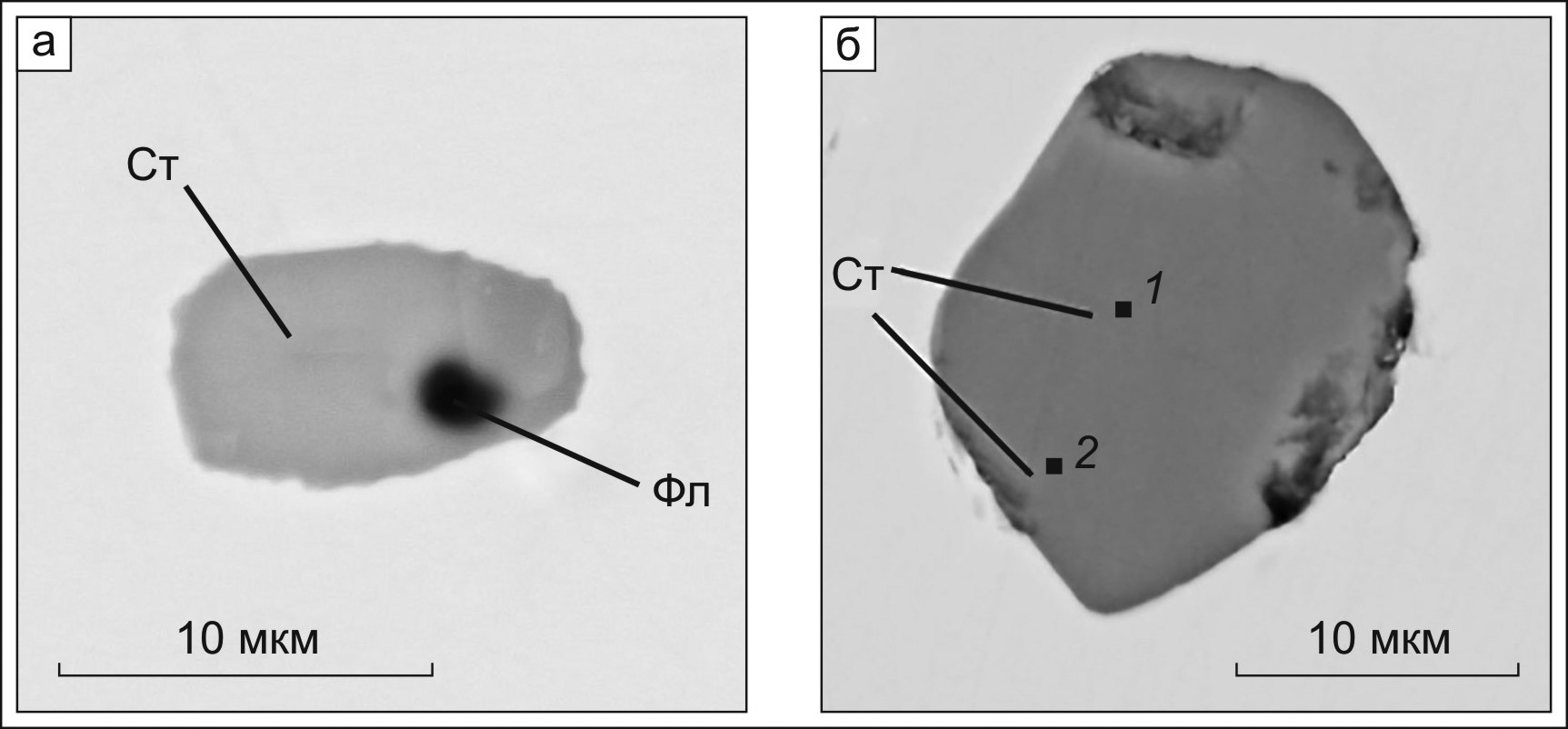 Состав стекол расплавных включений проанализирован в ИГМ СО РАН на СЭМ LEO 1430 VP и MIRA 3 LMU (Tescan Orsay Holding) с системой микроанализа INCA Energy 450+ XMax 80 (Oxford Instruments Nanoanalysis Ltd) при ускоряющем напряжении 20 кВ, токе электронного пучка 1.5 нА и живом времени набора спектров 20 с. Погрешность определения основных компонентов (С ≥ 10–15 мас. %) не превышает 1 отн. %. Погрешность определения компонентов с концентрациями 1– 10 мас. % лежит в диапазоне 2–6 отн. % и обычно не превышает 10 отн. %. При концентрациях вблизи предела обнаружения (0.2–0.3 мас. %) погрешность может достигать величины 20 отн. % (Лаврентьев и др., 2015).