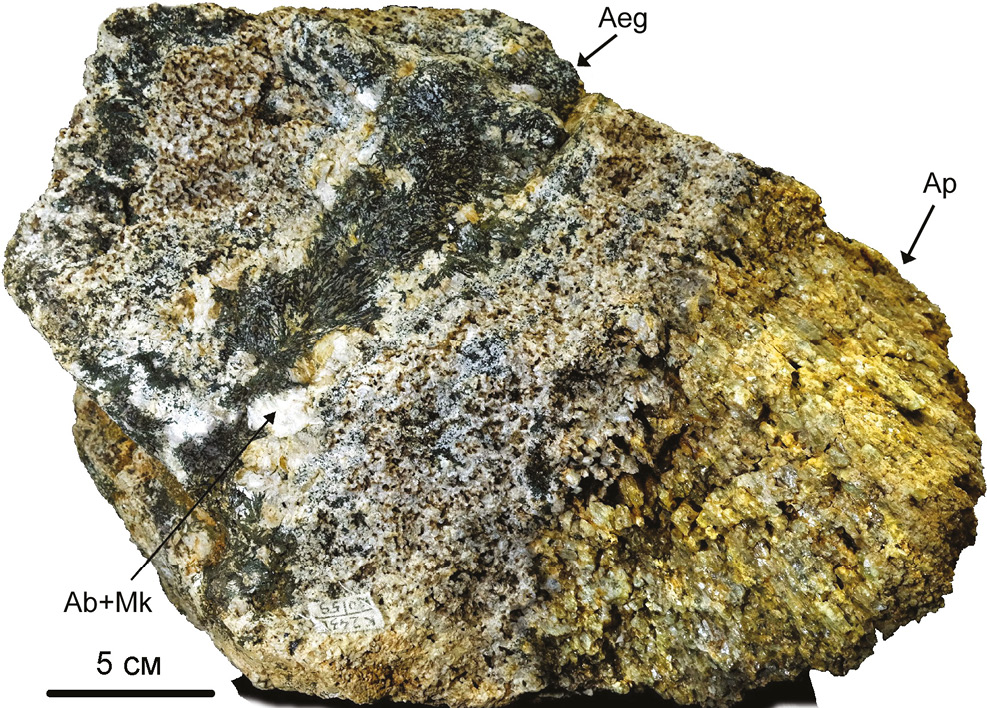 Ab – альбит, Ap – апатит, Mk – микроклин, Mp – мезопертит.