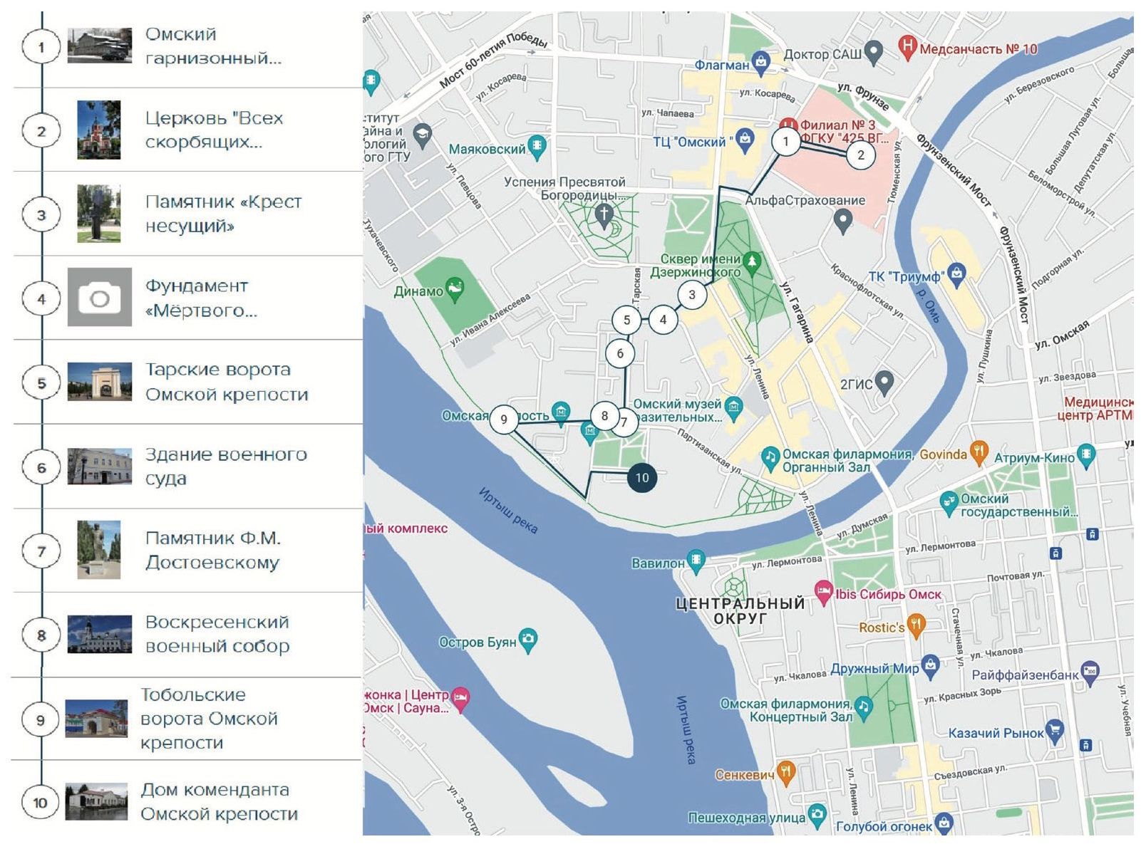 Omsk is the city where F. M. Dostoevsky served a penal sentence in 1850–1854 and where the “rebirth of his beliefs” occurred. In the first part of the article, Dostoevsky’s memorable sites in Omsk are revealed based on the impressions of the writer himself, as reflected in “Notes from the Dead House” and “Siberian Notebook,” memoir, epistolary, local history and archival sources (Article lists of prisoners of the Omsk prison (ostrog) and maps and plans of the Omsk fortress, stored in the Russian State Military Historical Archive, metric books of Omsk, stored in the Historical archive of the Omsk region). Through the Tara fortress gate, prisoners arrived at the Omsk prison (ostrog); and through the Tobolsk fortress gate, they went to menial jobs. The house of the engineer general have been preserved, who was in charge of prison work (it also housed the engineering office, where Dostoevsky worked as a scribe), as were the complex of the military hospital, where prisoners were treated and had the opportunity to read and write, and where the “Siberian Notebook” was created, the fortress of the Resurrection Military Cathedral, where they were taken for church services and whose rectors nursed the prisoners, and the house of Platz-Major V. G. Krivtsov and the house of the commandant of the Omsk fortress A. F. de Grave. The second part of the article, arranged as a tour of Dostoevsky’s sites in Omsk, describes the history and current state of all identified objects in the same order from the point of view of the restorer and architect. Some loci have disappeared irrevocably; some have been restored for the anniversary of the writer; some of them do not have the status of a monument of history and culture. The task of professional restoration, conservation and museumification of all the memorable sites in Omsk has been set to create a single memorial route “Dostoevsky’s Omsk.”