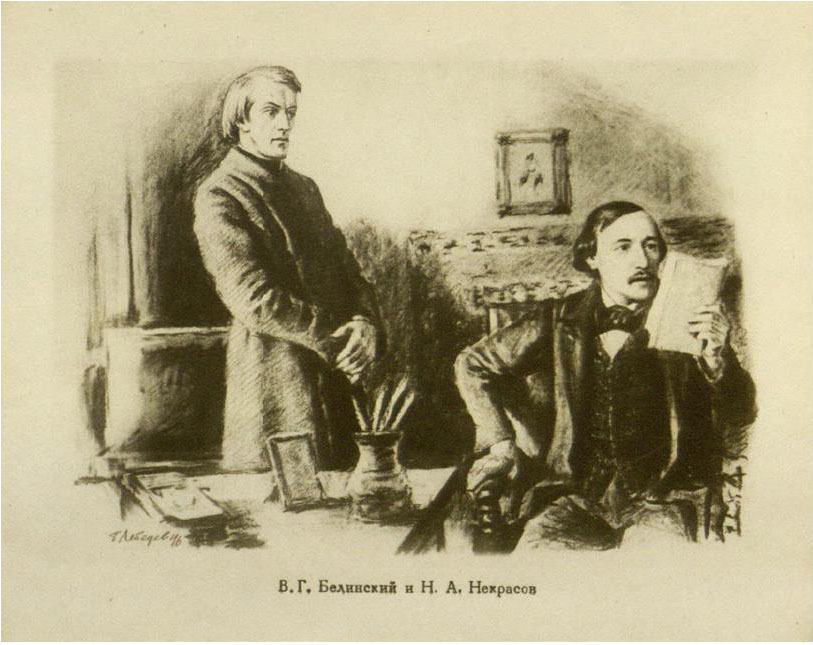 Илл. 6. Белинский и Некрасов. Иллюстрация Б. И. Лебедева из альбома «Белинский в жизни»