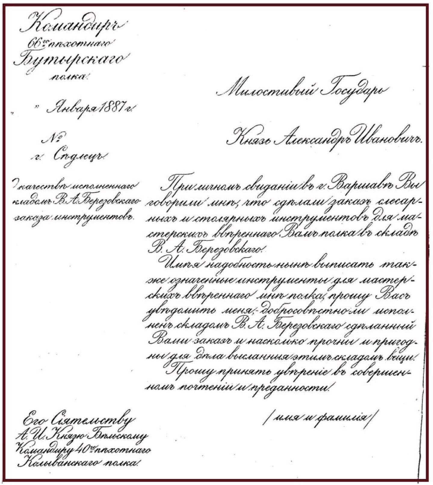 Fig. 9. Samples of military clerk's writing (“inclined” handwriting). “Calligraphic Samples of Inclined and Straight Handwriting” by V. S. Gerbach (1901, ed. 2)