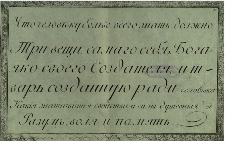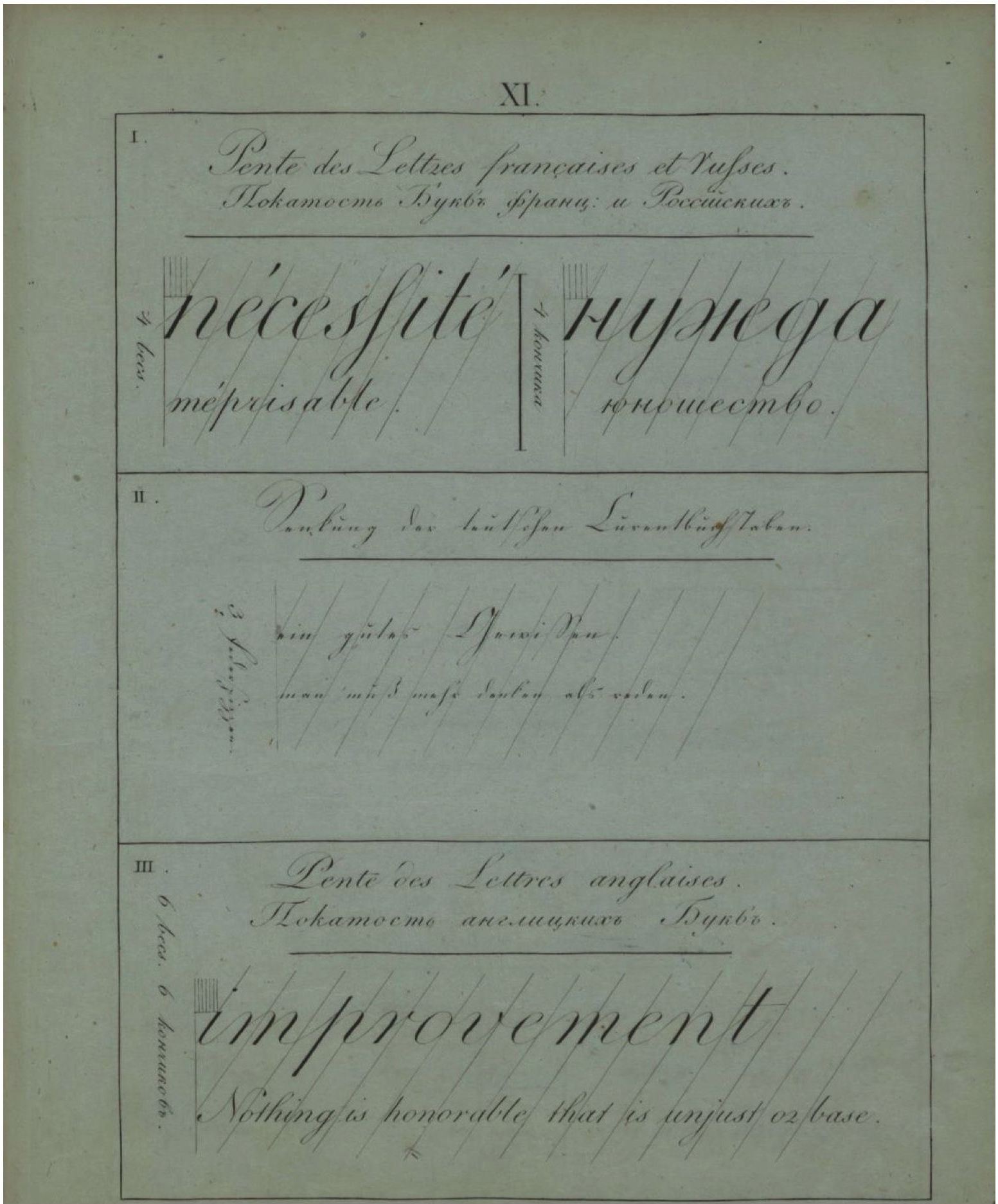 Fig. 14. “Examples of Russian Penmanship of the Newest Handwriting with the Addition of a Easy Instruction…” (1823)