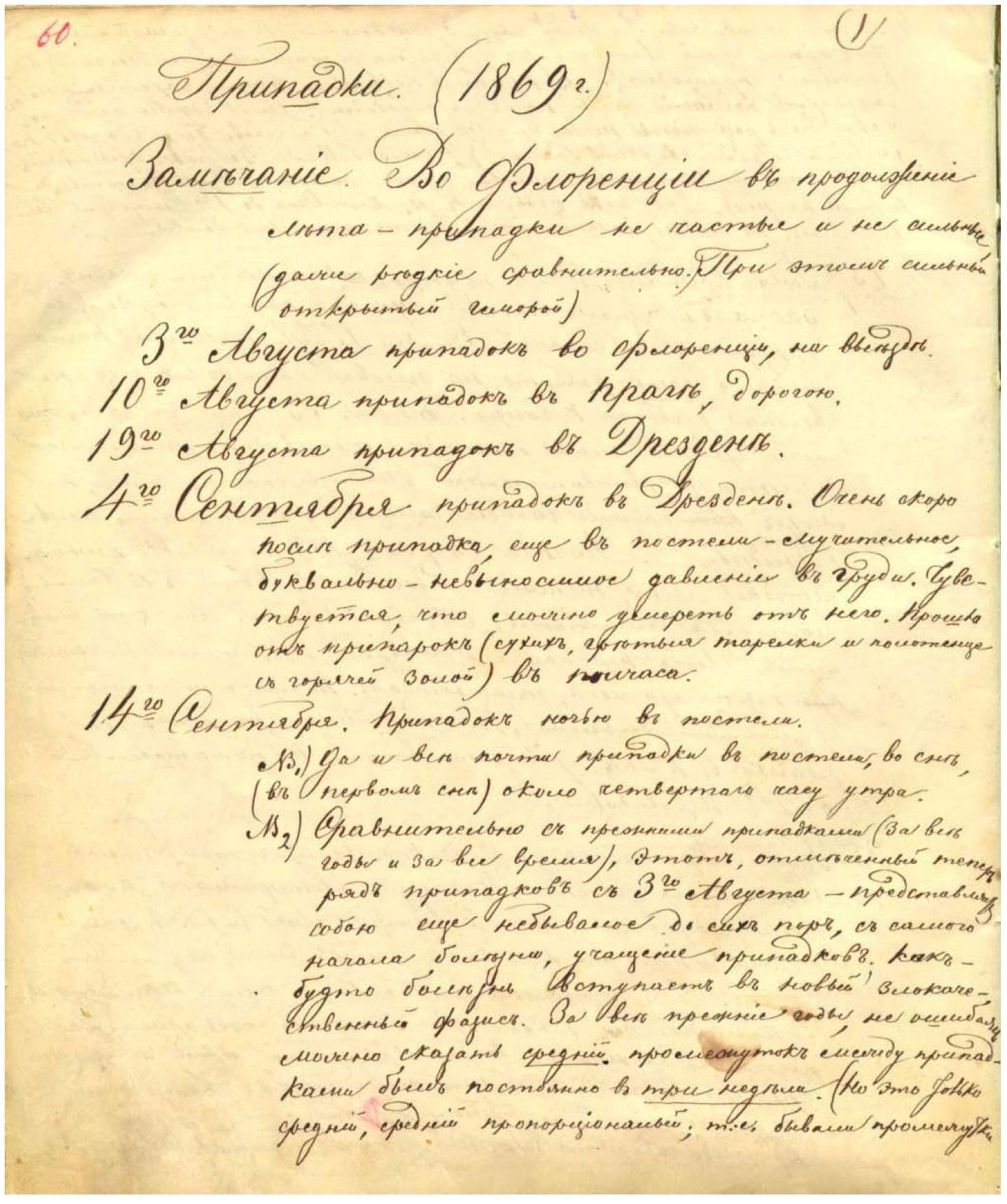 Илл. 8. Страница записной тетради Ф. М. Достоевского 1869–1870 гг. Тип почерка — пропись (РГАЛИ. Ф. 212.1.8. С. 60)