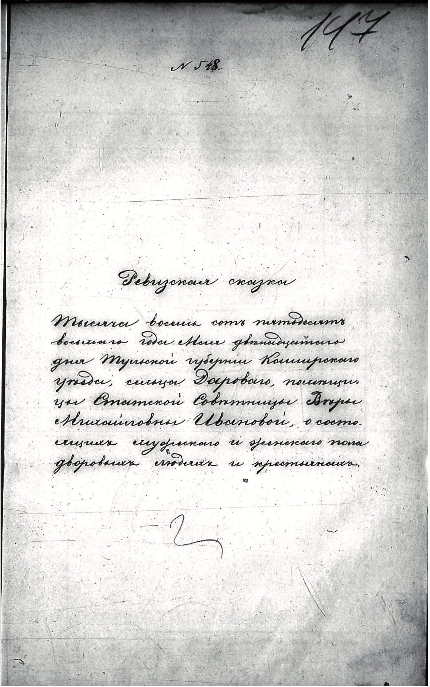 Илл. 2. Ревизская сказка 1850 г. Титульный лист (ЦГА Москвы. Ф. 1249. Оп. 1. Д. 7. Л. 301)