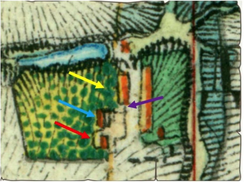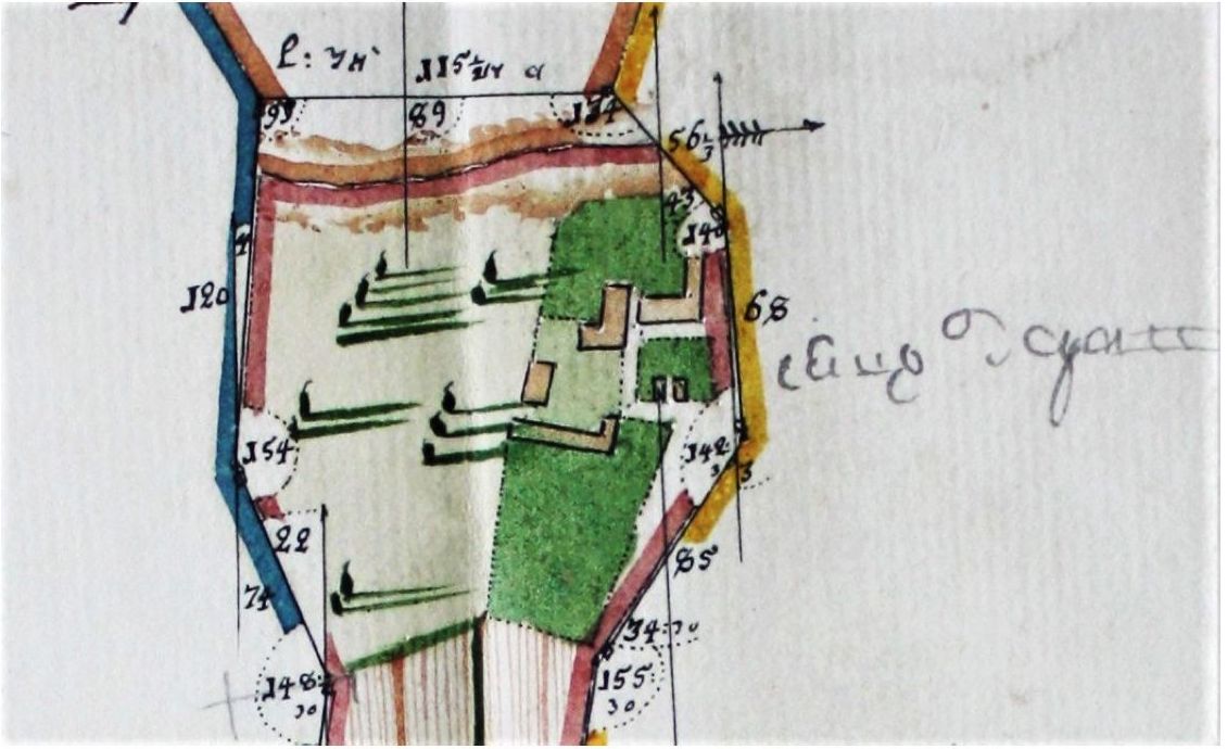 Fig. 3. A fragment of the “Geometric special plan <...> of the village of Darovoe”. 1778. (The State Archive of the Tula region. Fund 291, inventory 7/38, case 556)
