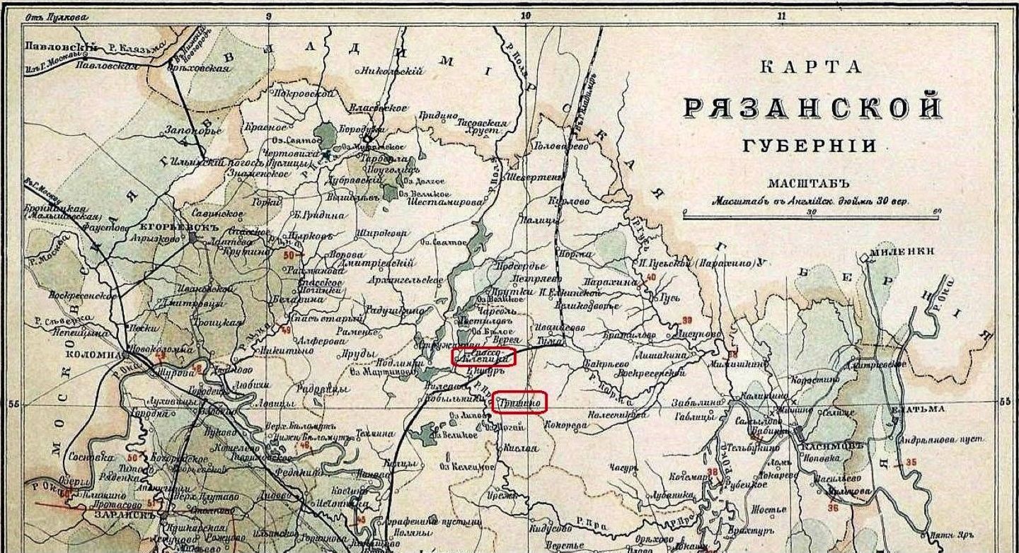 Fig. 4. Spas-Klepiki and Grishino on the map of Ryazan province in 1899