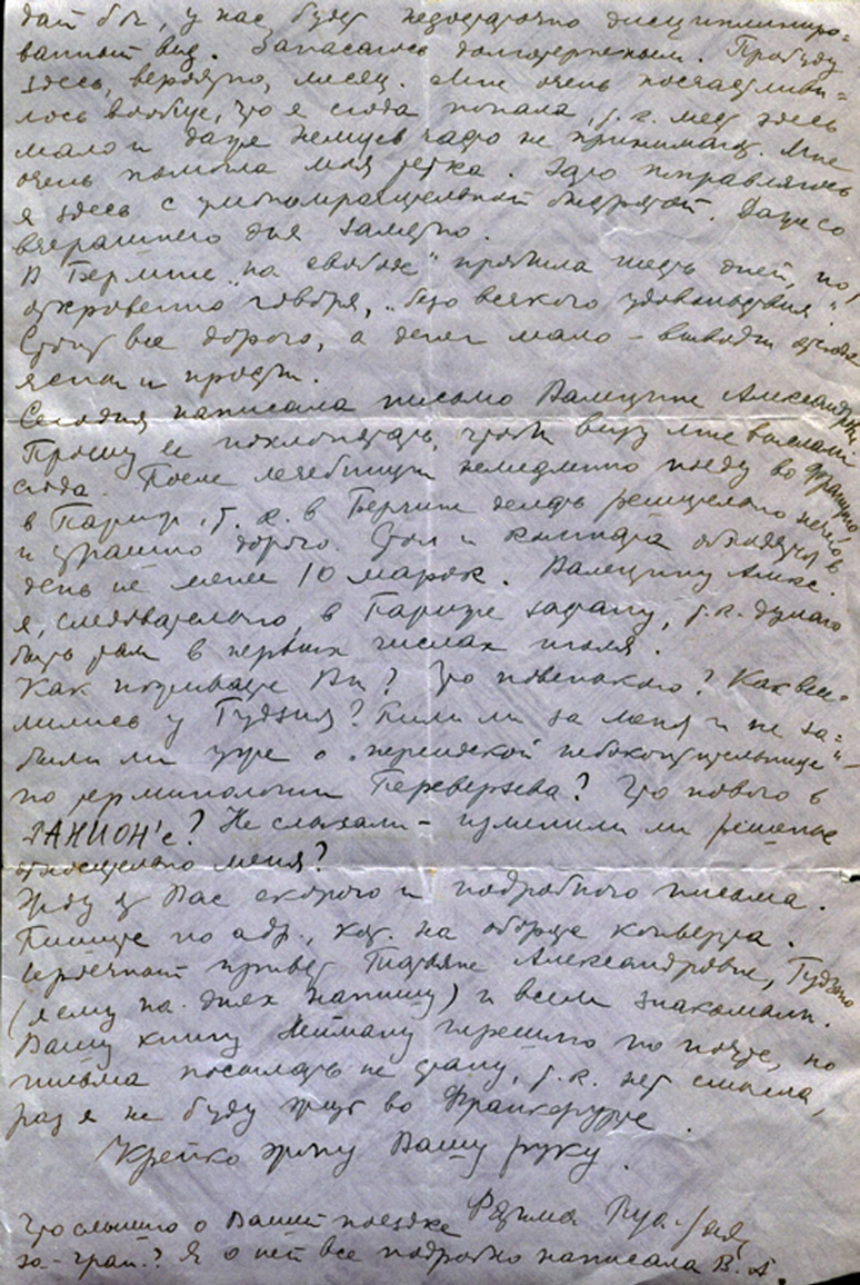 Фраза о «персидской небокоптительнице» предстает как ироничная самохарактеристика, в которой прочитывается не только требовательность к себе, но и обостренное осознание собственной национальности. В тегеранском письме к Г. А. Шенгели Ф. Риза-Заде выражает заинтересованность культурой аутентичного Ирана, причастность к которому была для нее столь значима: «Возможно, что в конце сентября съездим на несколько дней в Исфаган полюбоваться настоящим, не европеизированным Востоком»11. Дошедшие до нас письма Ф. Риза-Заде 1929–1930 гг. дают возможность услышать живые интонации, уловить стиль ее общения, прикоснуться к ее непростой жизненной истории.