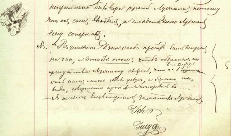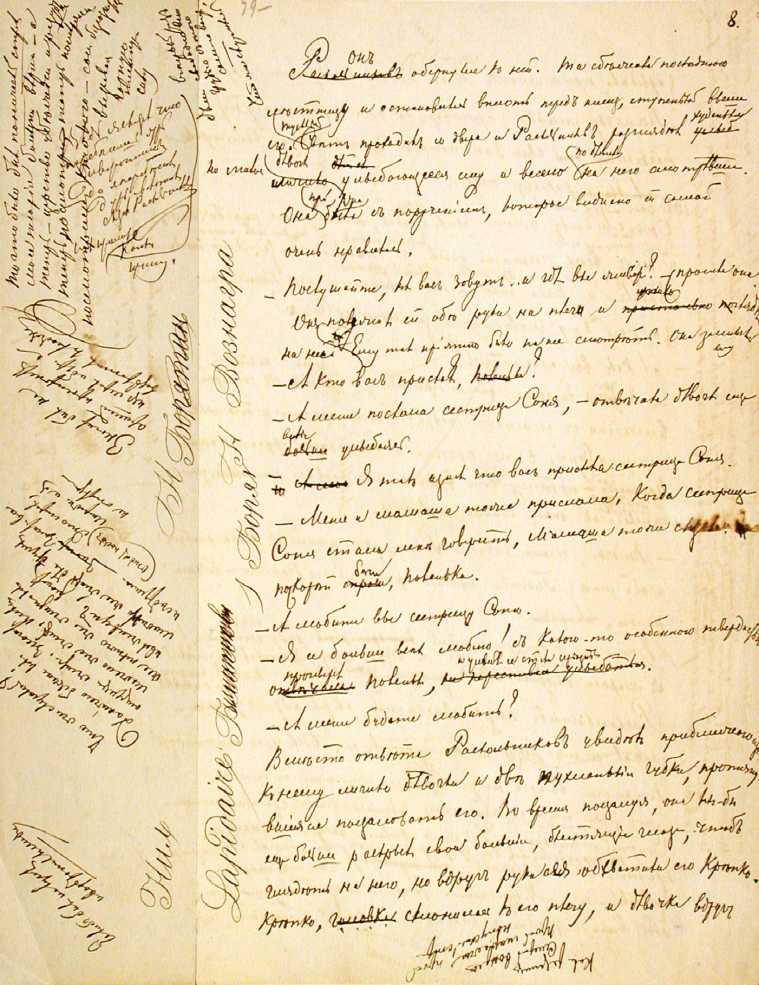 Каллиграфические записи: «Престу<пление>», «Бог» — центральные пункты идеологии романа «Преступление и наказание». Нравственное состояние человека зависит от его религиозных взглядов, считал Достоевский, в то время как отпадение от Бога чревато принятием принципа «все позволено» и ведет к его практической реализации: насилию над ближним или убийству.