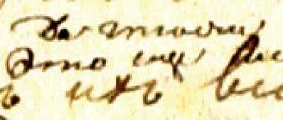 Такой же случай встречаем в позднейшей вставке на полях справа около записи 384 на л. 23: «Жена говоритъ: рѣжь въ солдаты <нрзб.>. Стали мы дожидаться, плакалъ съ ней, а ночью зарѣзалъ» (запись сделана другими чернилами, более мелким почерком, чем основной текст, и часть букв «съедается» пятном на бумаге):