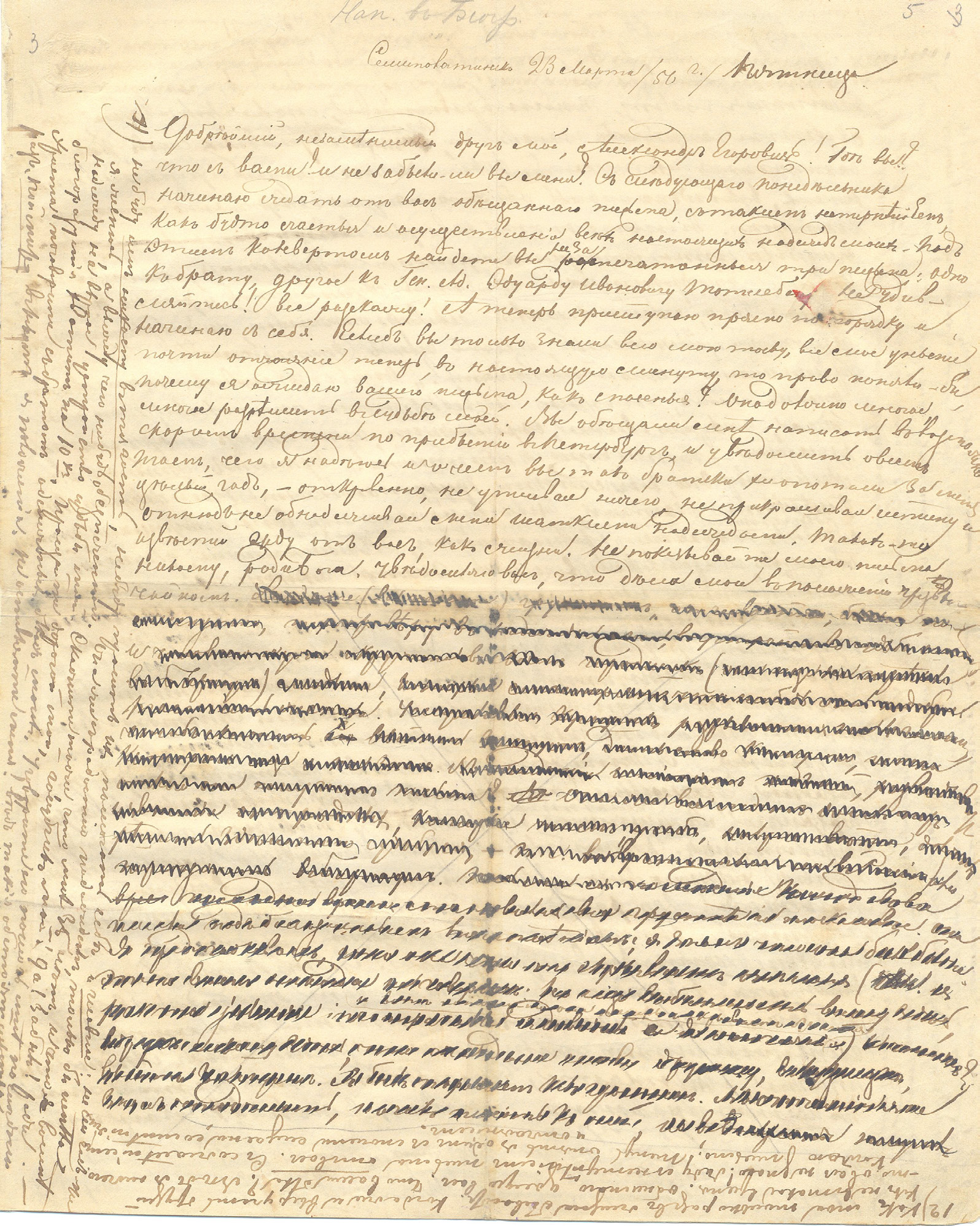 Илл. 4. Исходное изображение страницы письма Ф. М. Достоевского к А. Е. Врангелю от 23 марта 1856 г. (НИОР РГБ. Ф. 93. Разд. I. Карт. 6. Ед. хр. 5. Л. 5)