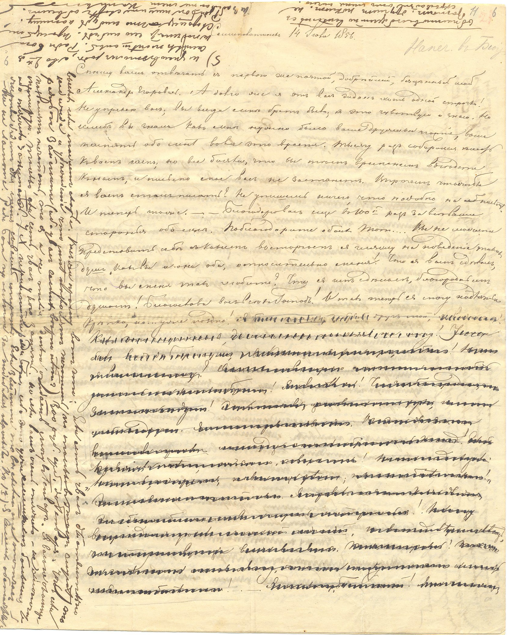 «<Она раз>пространяетъ въ Барнаулѣ, не стѣсняя<с>ь и почти публично, что вы Первѣйшiй лгунъ и враль въ мiрѣ, говоритъ о васъ