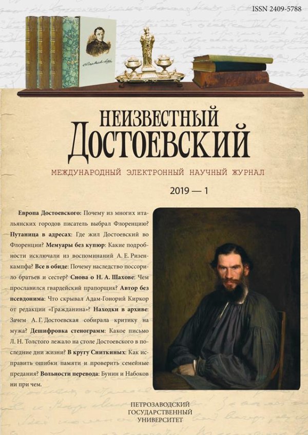 The article deals with the unique materials kept in the Dostoevsky archive, namely the documents containing shorthand notes of the writer’s wife. There is a description of the transcripts deciphered by Ceciliya Poshemanskaya as well as of those that are not deciphered yet. It is defined that the famous Leningrad stenographer had an unknown predecessor who had deciphered the letter of Anna Dostoevskaya addressed to S. A. Kashina. The main subject of the study became the unknown shorthand records on the back of draft letters of Anna Dostoevskaya to V. I. NemirovichDanchenko. For the first time they have been deciphered and proved to be two draft letters of Anna Dostoevskaya. The study involved the third transcript, deciphered by C. Poshemanskaya, but left non-attributed. All three transcripts date back to May 1911 and have a common theme of the return of Leo Tolstoy’s letter ended up in the hands of Dostoevsky shortly before his death and kept in the Dostoevsky archive for 30 years. In her verbatim draft Anna Dostoevskaya indicates the number of pages of the returned letter by Tolstoy. It coincides with the number of pages of the letter dated back to February 2–3, 1880 and confirms the hypothesis of the researchers about what kind of Tolstoy’s letter shocked Dostoevsky. In this letter Tolstoy expressed his “confession of faith” and new mindsets that aroused the interest of the author of “The Brothers Karamazov”. The letter was given to Dostoevsky by Countess A. A. Tolstaya who was Leo Tolstoy’s opponent in the matter of faith. On May 6, 1911 Dostoevsky’s widow gave back the letter to the publishers of Tolstoy’s legacy. Their addressees are M. N. Galkin-Vraskoy, executor of the estate of A. A. Tolstaya, and Vs. I. Sreznevsky, scientific Secretary of the Manuscripts Department of the Library of the Academy of Sciences and publisher of Tosltoy’s legacy. This study presents the first decipherment of Anna Dostoevskaya’s transcripts after a half-century break. The established facts reveal the history of Tolstoy’s letter read by Dostoevsky, and contribute to the systematization and the most detailed description of the materials of the Dostoevsky archive.