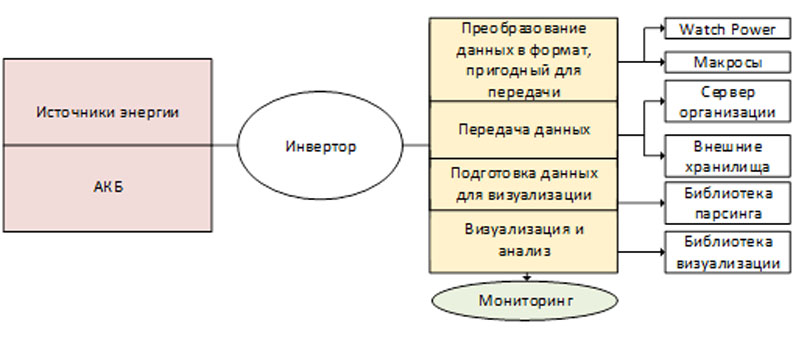 3.2. Система мониторинга. Идея системы мониторинга основана на предоставлении удаленного доступа к данным работы микросети. Логическая схема взаимодействия с данными показана на рисунке 3.