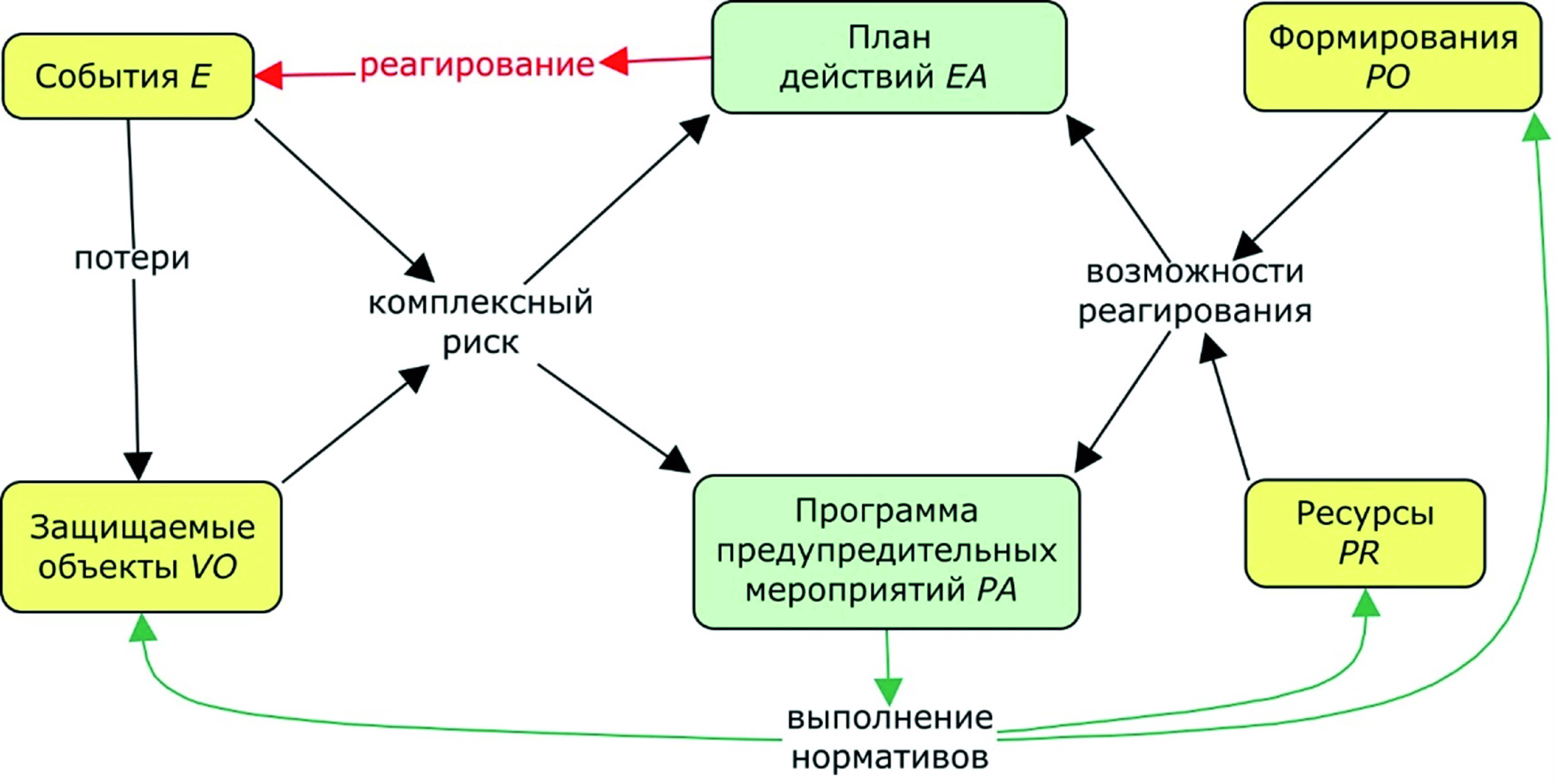 Формирование решений для оперативного управления (EA → E) реализуется на основе ситуационного моделирования опасностей E, уязвимости VO и защищённости PO+PR. Детализация сценариев масштабных ситуаций требует построения разветвлённой семантической сети или других представлений, сложных для понимания ЛПР.