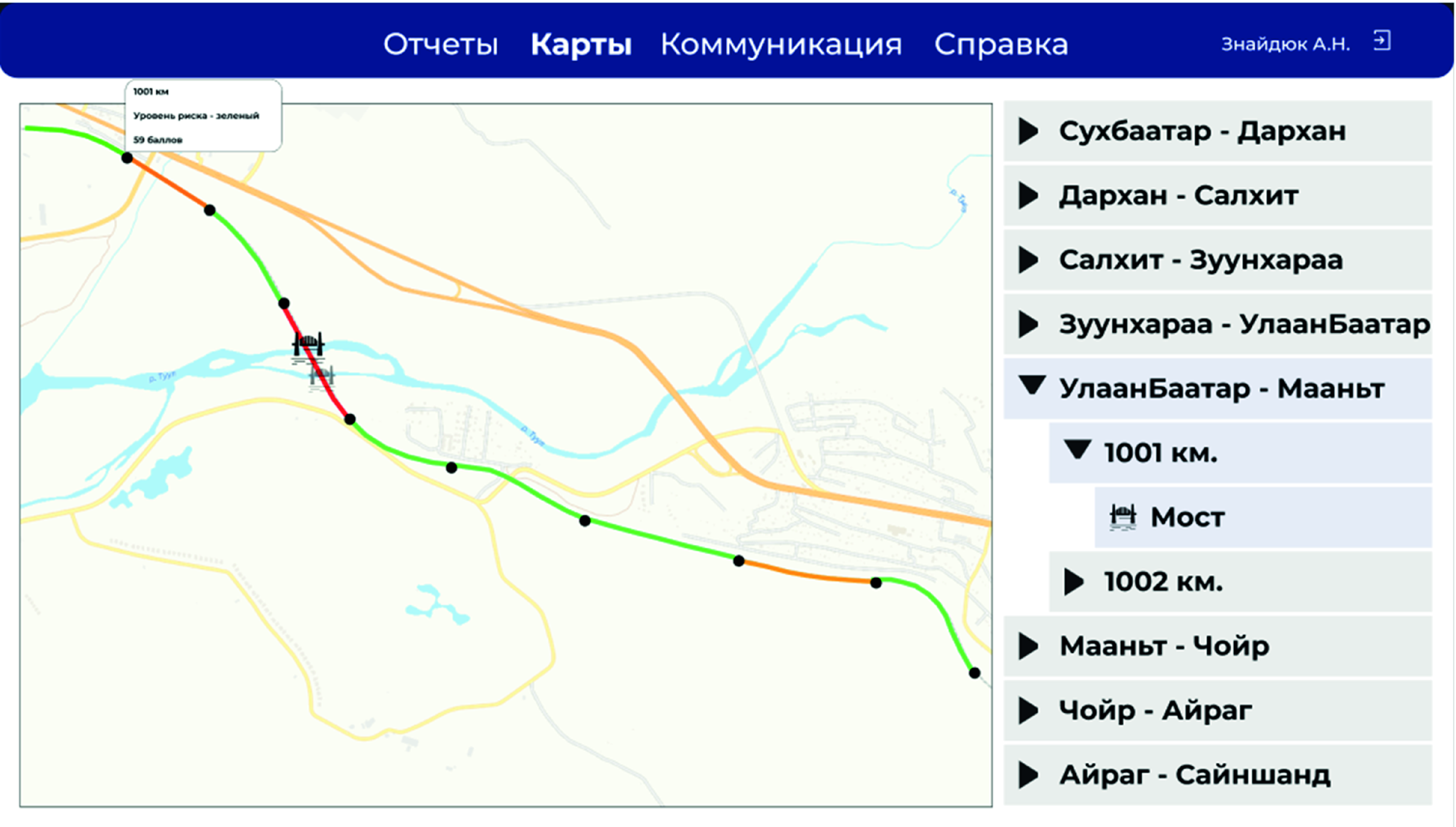 Система контроля опасности размыва дороги СКОРД. Рассмотрим возможности СППР СКОРД. Система осуществляет мониторинг опасности возможного размыва участков земляного полотна и искусственных сооружений Улан-Баторской железной дороги, с использованием современных геоинформационных технологий, а также возможностью мониторинга состояния ИССО. ПО реализовано как веб-приложение с использованием ГИС-технологий.