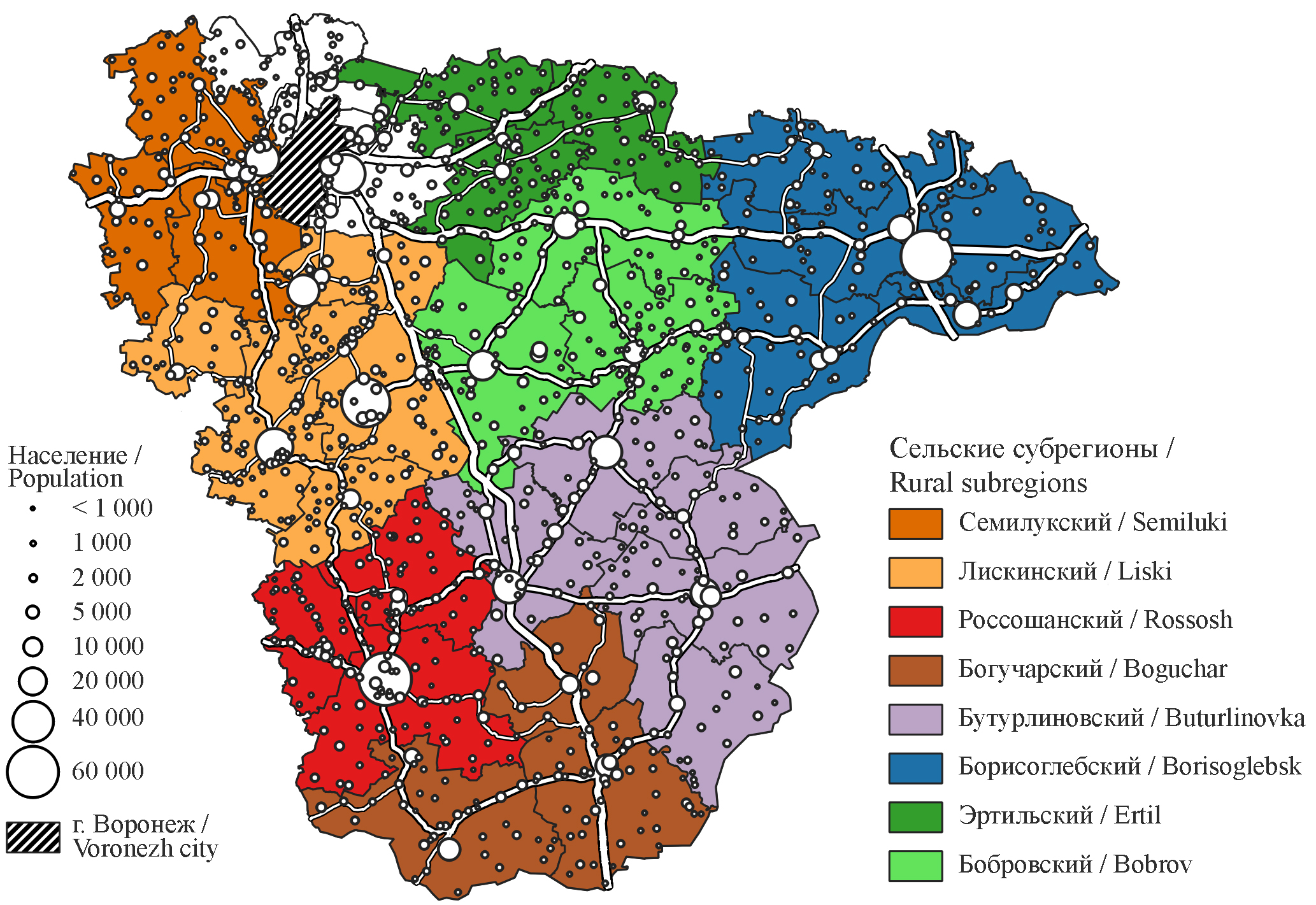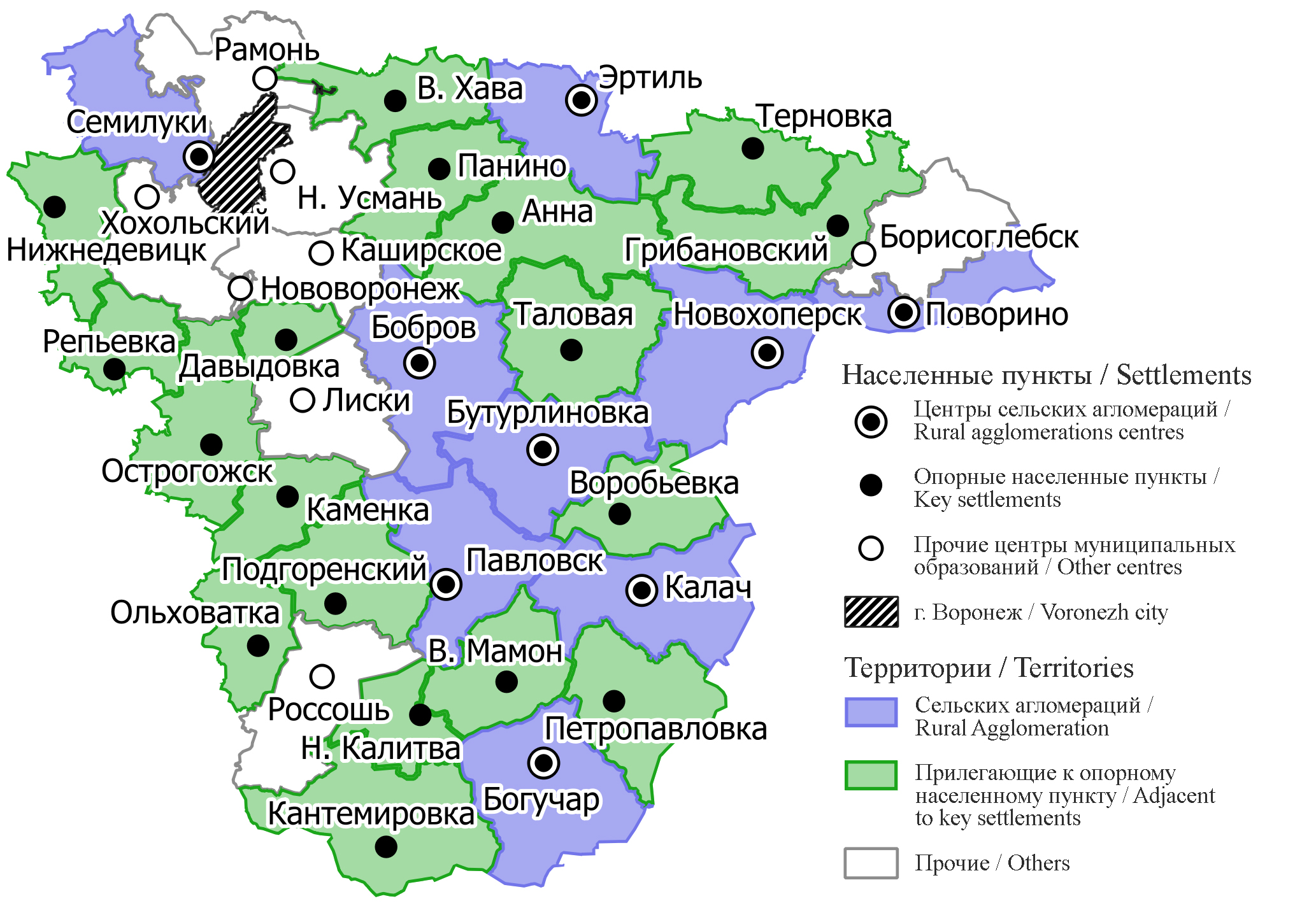 Fig. 1. Rural agglomerations and key settlements of Voronezh Region