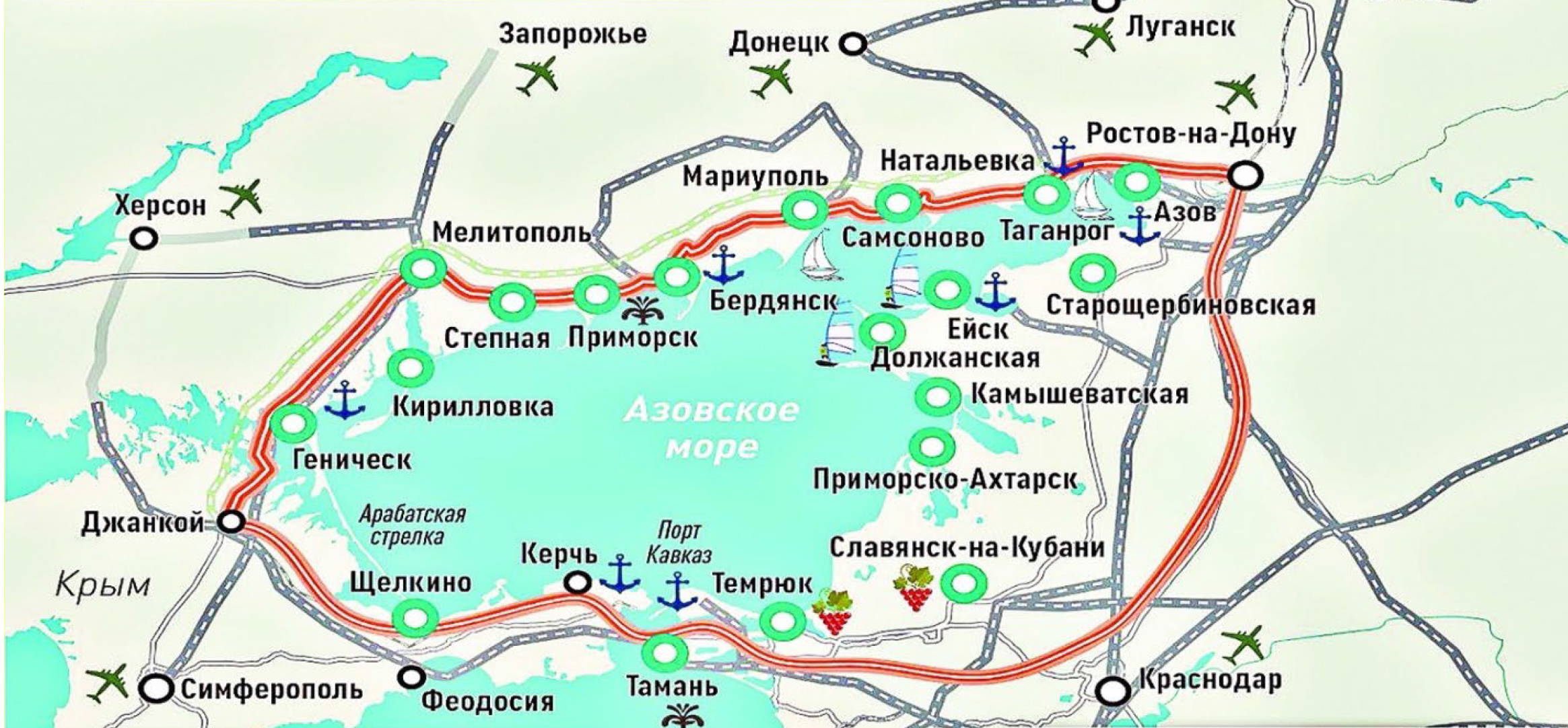 Выход новых регионов к Азовскому морю позволит развивать здесь пляжный, рекреационный и парусный туризм (например, в поселке Мелекино или Белосарайской Косе Донецкой области). В названном программном документе упоминается строительство яхтенной марины возле Мариуполя, а также формирование зоны пляжного и парусного отдыха на Арабатской Стрелке возле Геническа (Херсонская область). Под Ейском и на Долгой косе (Краснодарский край) предполагается активно задействовать направление виндсёрфинга и т. д. Кроме того, планируется создание 20 курортных кластеров, включая новые территории. Участок в почти 280 км побережья Черного и Азовского морей, относящийся к Донецкой Народной Республике (ДНР) и Херсонской области, будет использован под пляжную инфраструктуру, в том числе под яхтенные марины. Для города Мариуполь готовится концепт-план по расширению сектора яхтенного туризма. Ожидается, что в ближайшее время побережье Азовского моря сможет принимать около 15–16 млн отдыхающих из России, Белоруссии и Казахстана.