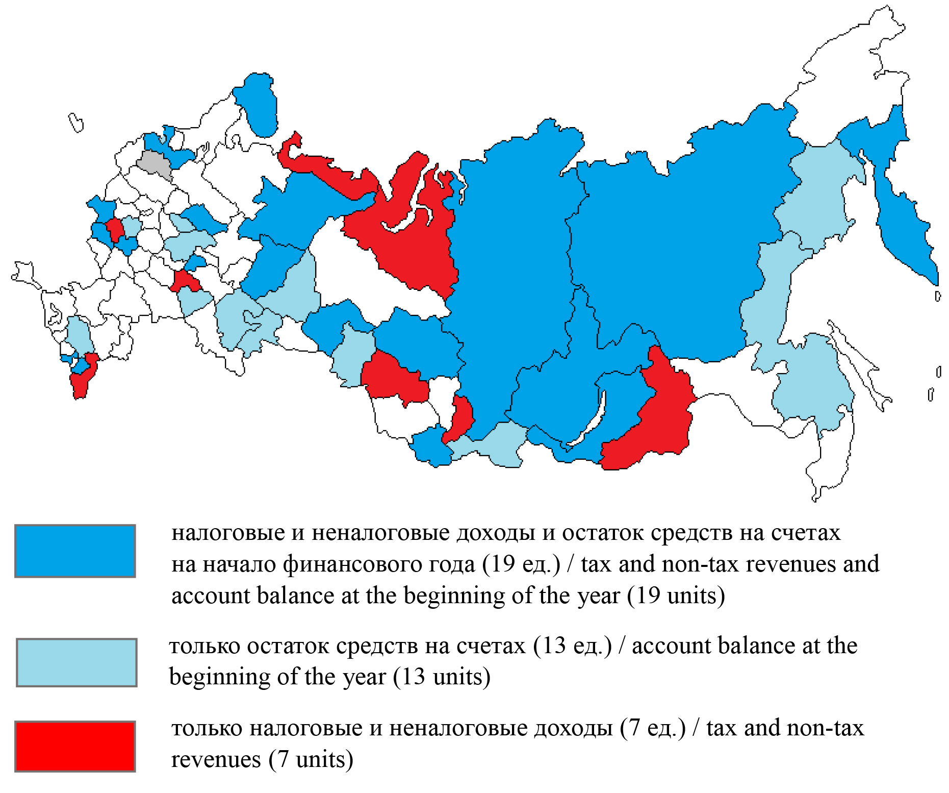 [7]Рисунок составлен авторами статьи. Примечание: всего 40 регионов, имеющих резервный фонд субъекта, включая Новгородскую область (выделена серым цветом).