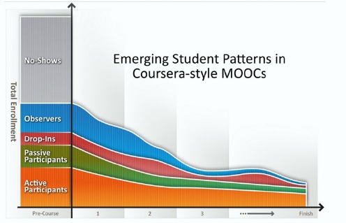 In a study F. Holland and D. Tirthali “active in the MOOC space” based on more than 80 interviews at 62 institutions, “researchers from the Teachers College at Columbia University, also concluded that most MOOC participants are already well-educated and employed, and only a small fraction of them are fully engaged in the courses”14.