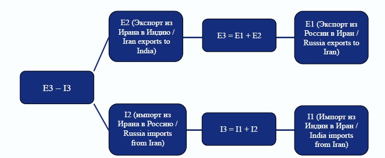 Рисунок представляет темпы роста от самых низких до самых высоких слева направо. Следовательно, разница между экспортом и импортом (в нашем случае разница между товарооборотом в обоих направлениях) должна быть наименьшей, а сам товарооборот – максимальным. Следует отметить, что в данном исследовании не рассматриваются прямые торговые потоки между Индией и Россией, поскольку их логистика может существенно отличаться, в том числе товары, их составляющие, могут поставляться с использованием Северного морского пути для экспорта в Китай или экономики Юго-Восточной Азии и затем реэкспортироваться в Индию. Помимо того, что Иран представляется «узким местом» инфраструктуры маршрута, достаточно очевидно, что иранский экспорт в Россию и Индию ограничен специализацией страны и ее долгосрочной ориентированностью на самодостаточность, тогда как индийская и российская экономики экспортоориентированы и их торговля растет быстрее иранской.
