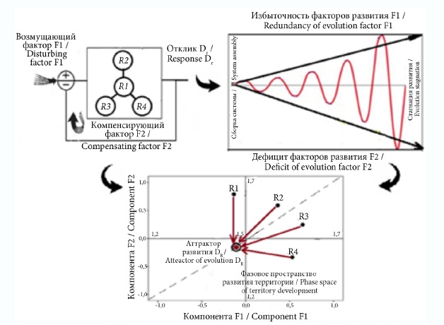 Аттрактор здесь классически понимается как ограниченная область устойчивых состояний, к которым эволюционирует социально-экономическая система в условиях действующих на нее внешних и внутренних факторных нагрузок.