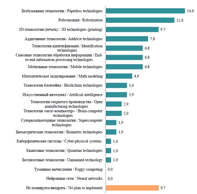 Fig. 4. Respondents’ opinions about the types of digital technologies planned for implementation in the next 5 years, %