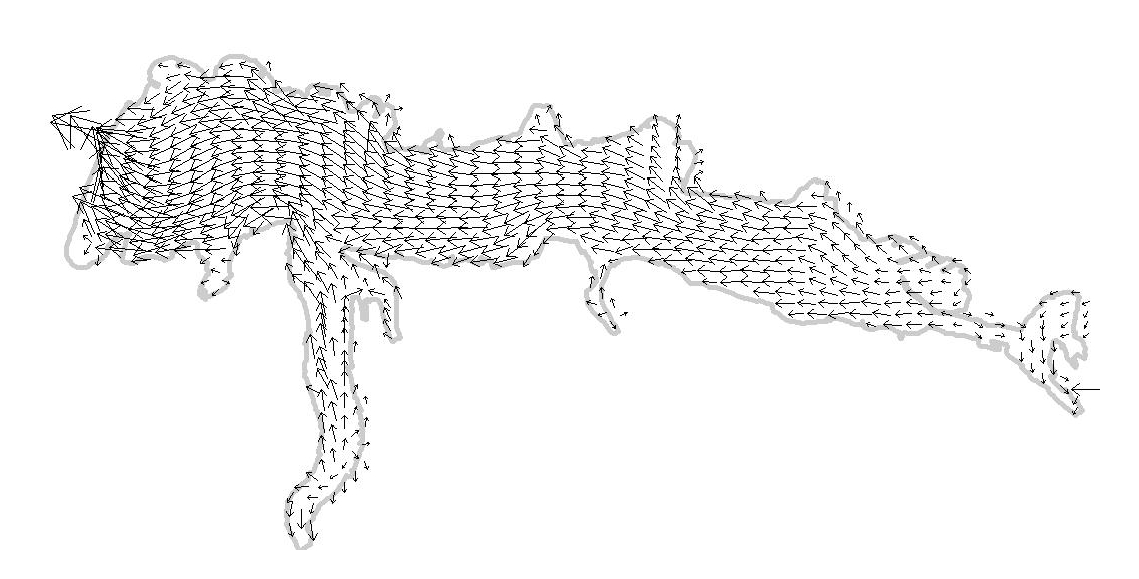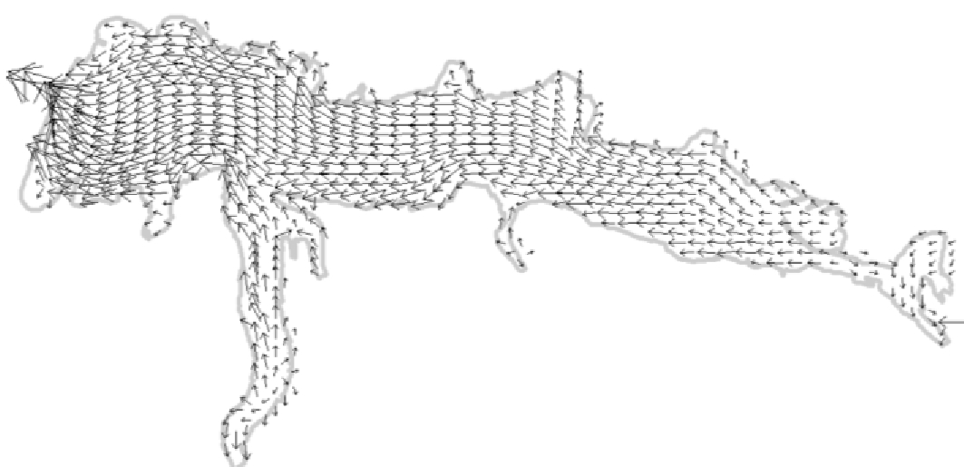 Fig. 4. Map of surface currents in Sevastopol Bay under an easterly wind of 5–10 cm/s